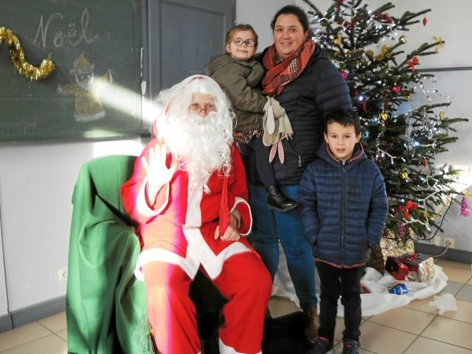 Nathan, Justine et leur maman Céline, très heureux de rencontrer le Père Noël.
